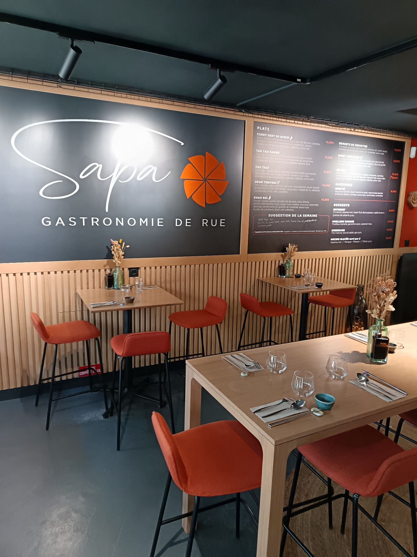 Chez SAPA, la rue n'est pas un décor : elle est une mémoire. Celle des marchés d'Asie, des comptoirs improvisés, des plats servis sans détour mais jamais sans soin. La gastronomie de rue, ici, a quitté le bruit pour garder l'essentiel : le goût, le geste, l'instant.