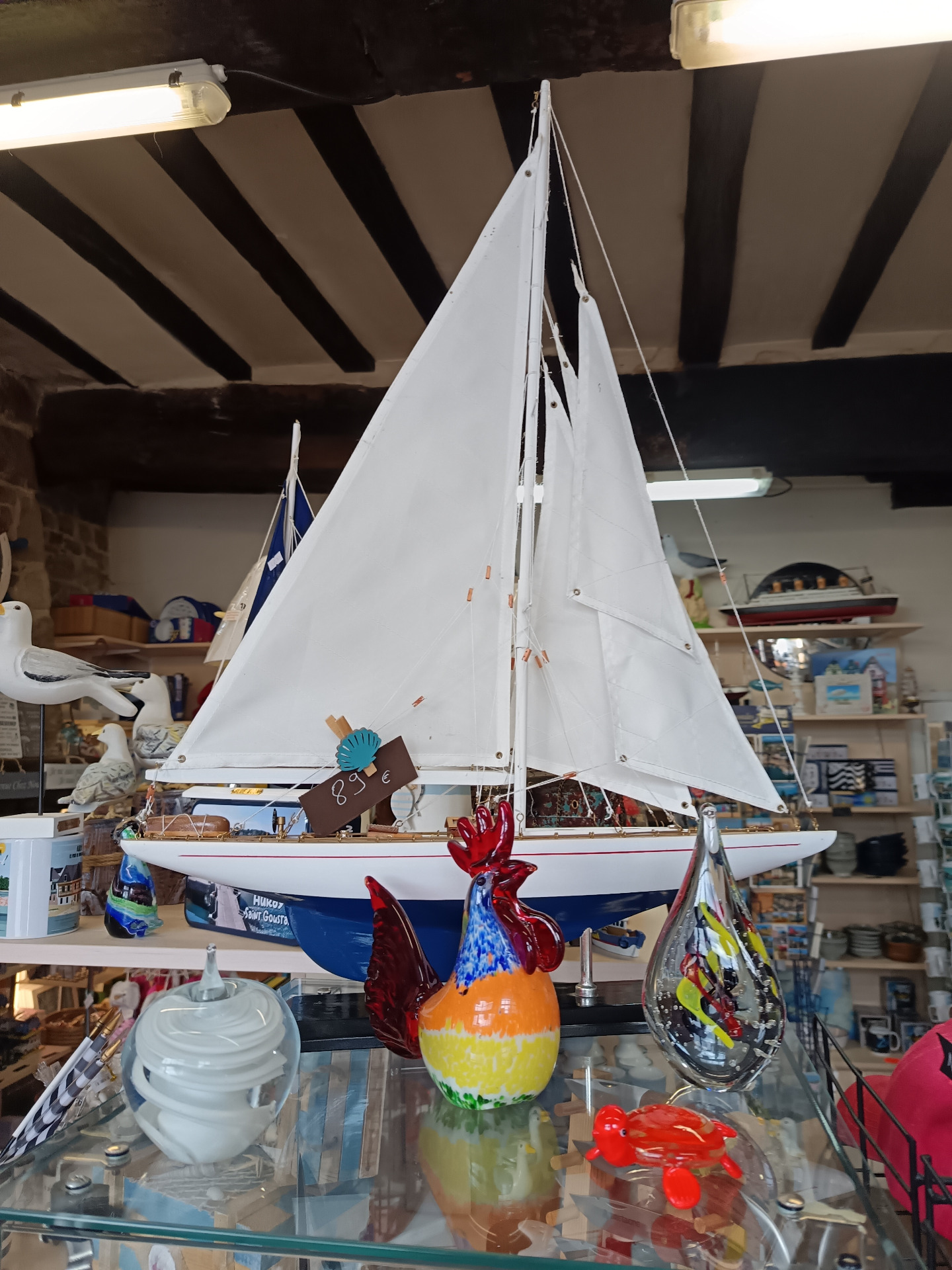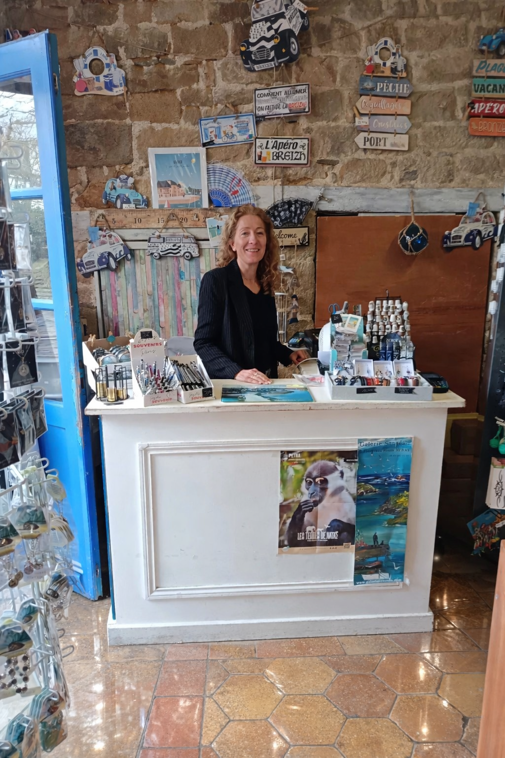 Sur les étagères, les bols bretons racontent les petits déjeuners face à la mer, les porte-clés tintent comme les clés d'une maison de vacances au bout du monde...