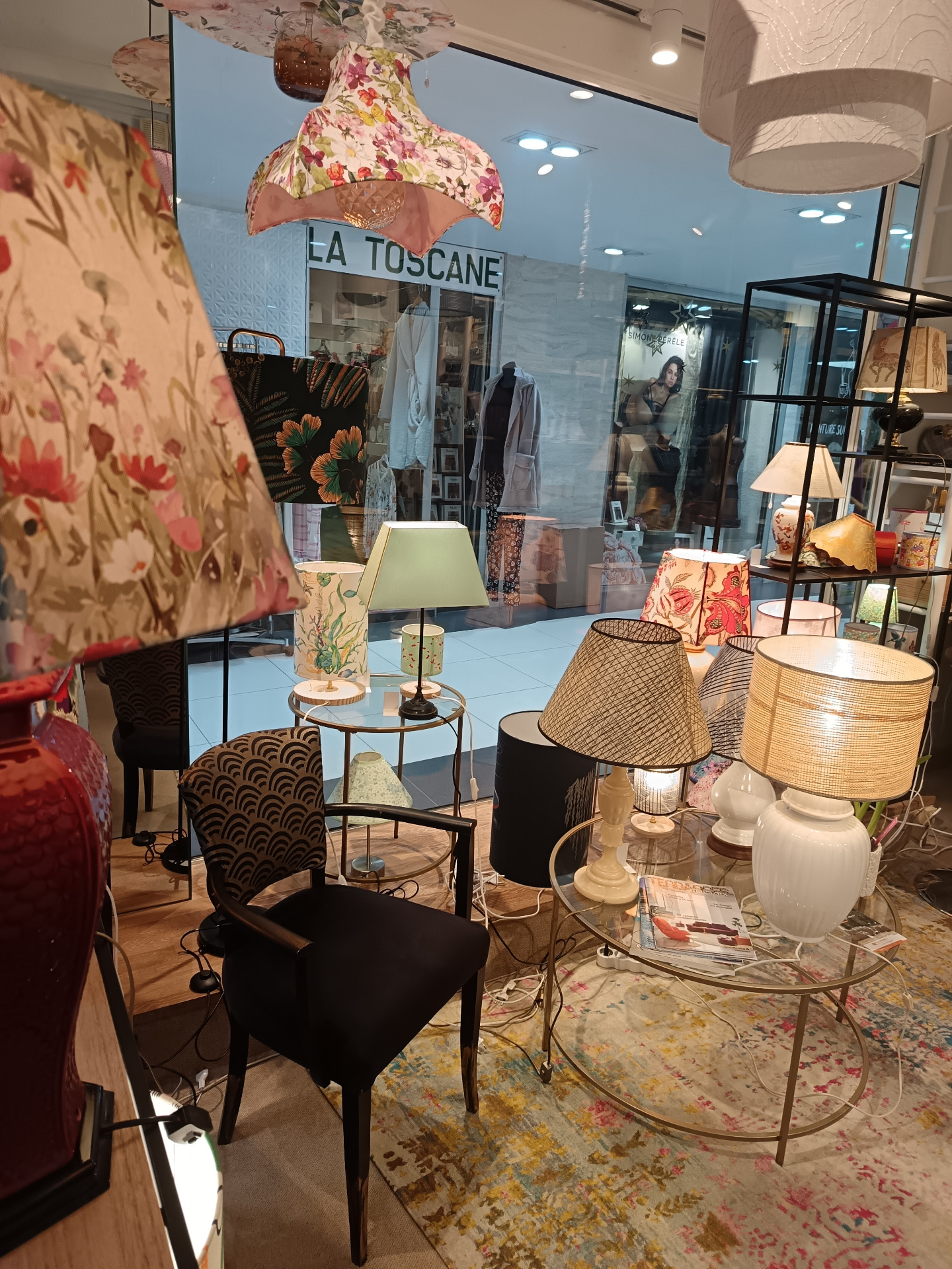 Créations sur mesure d'abat-jour, suspensions, appliqués murales, lampes, lampadaire.